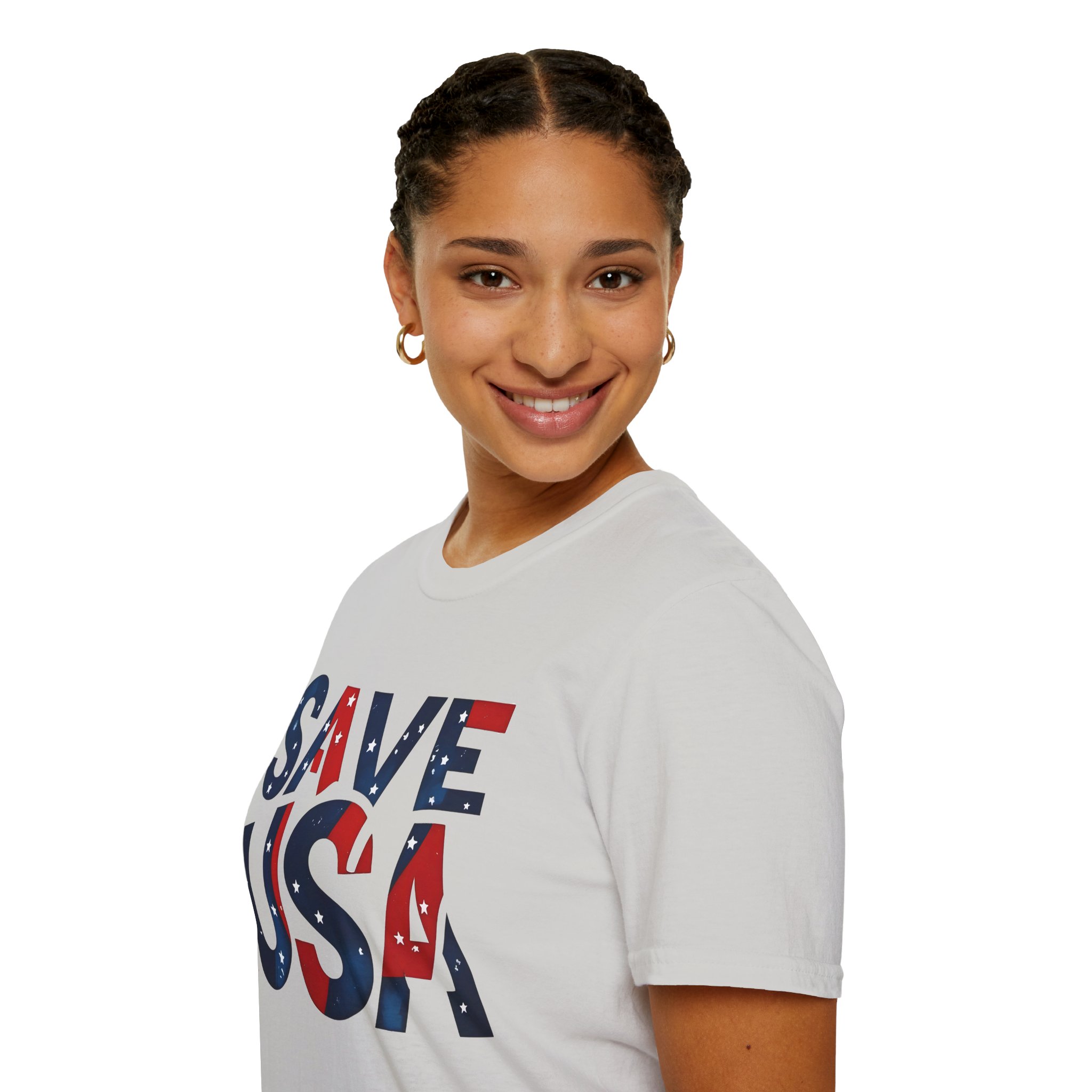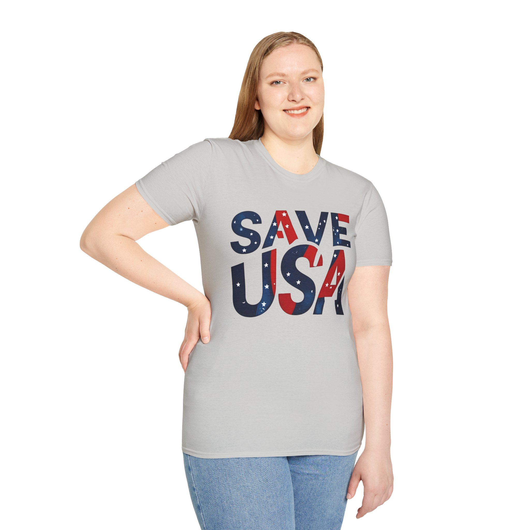 Introducing our vibrant Unisex T-Shirt! This shirt radiates a patriotic vibe with its bold “SAVE USA” design. Crafted from 100% ring-spun cotton, it offers a soft and lightweight feel that you’ll love wearing throughout the year. The classic fit and crew neckline ensure versatility, easily pairing with jeans, shorts, or skirts for a laid-back look. Ideal for anyone who values comfort and style, this t-shirt is a must-have for people who seek to express their love for their country while looking effortlessly chic. Celebrate your spirit and make a statement with this appealing piece!